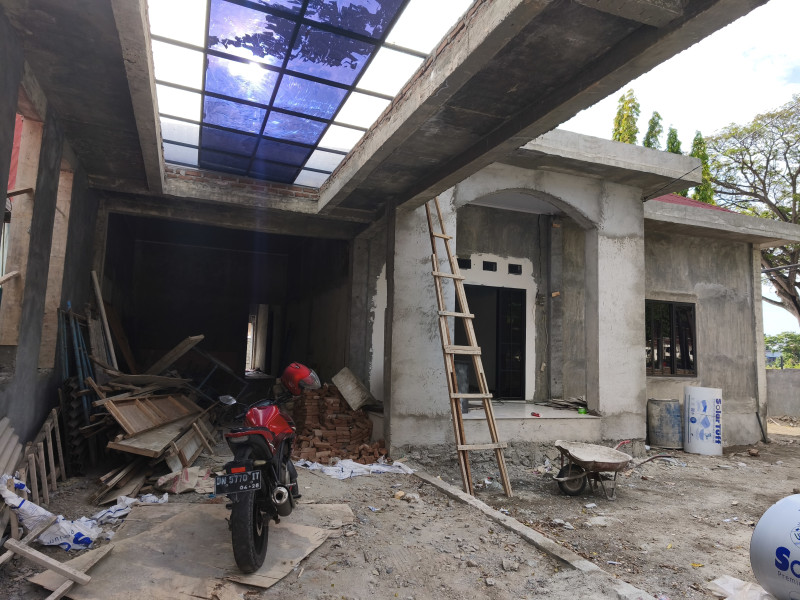 Tampak Rujab Asisten Intelejen Kejati Sulteng yang dibiayai hibah APBD tahun Anggaran 2025 hingga kini belum rampung, padahal kontark proyek tersebut berahir pada Ahir 2025. Senin (30/3/2026) [SULTENG.WAHANANANEWS.CO / Awiludin Moh Ali]