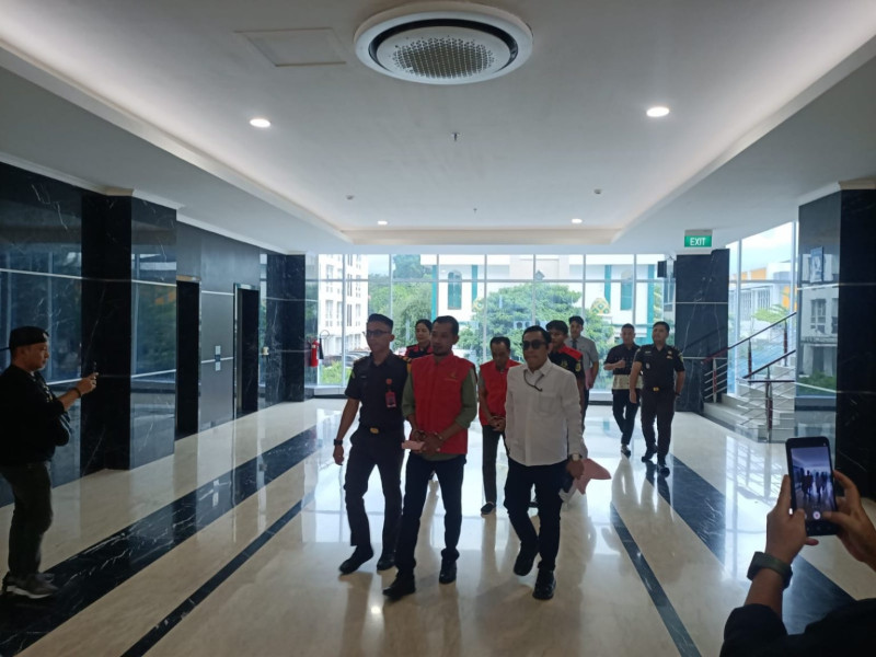 Tampak PPK Proyek Mess Morowali Sulteng, Arifin Ukasa, memakai Rompi orange, sesaat setelah ditetapkan sebagai tersangka dan digiring ke mobil tahanan Senin (8/12/2025) SULTENG.WAHANANEWS.CO / Awiludin Moh Ali]